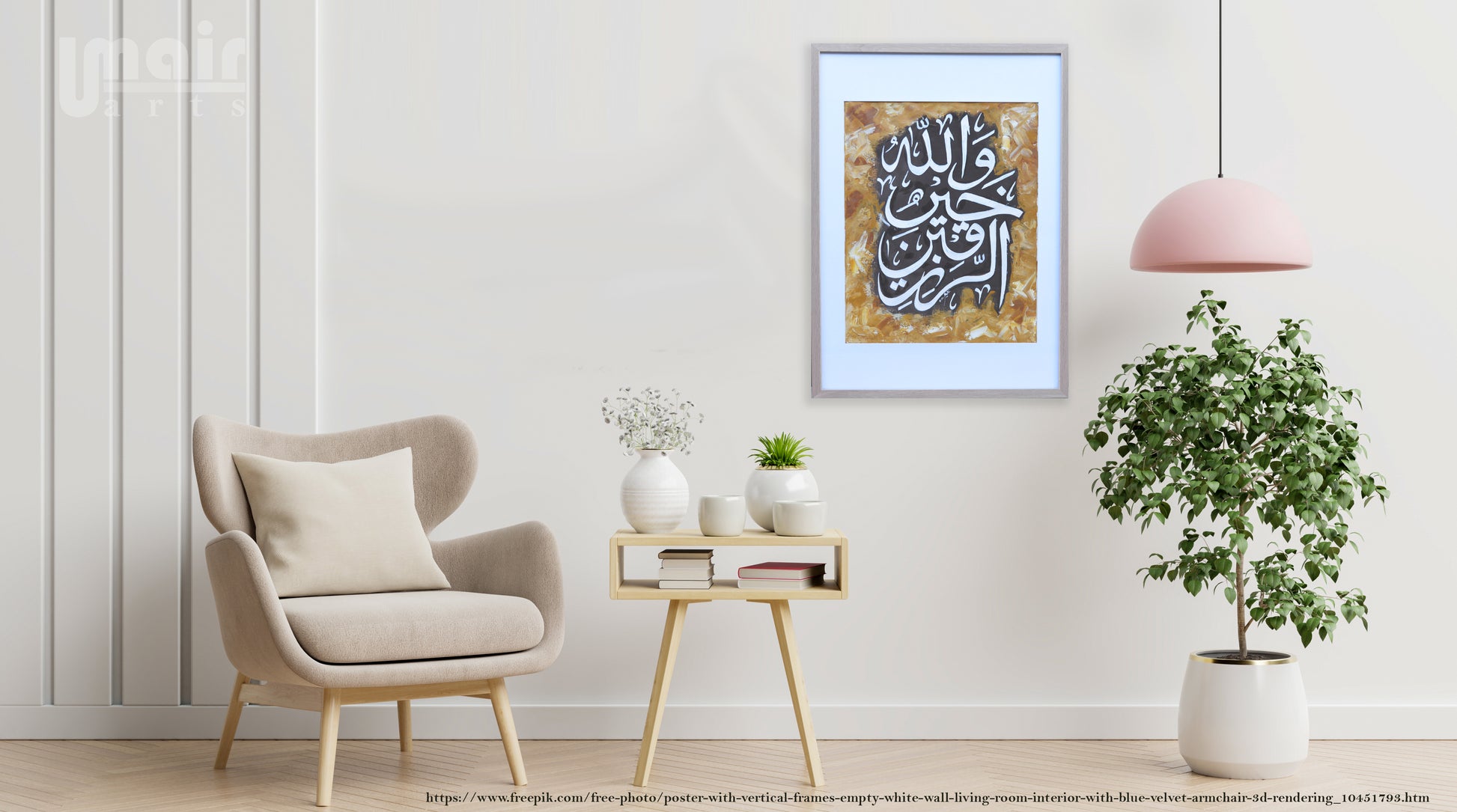 A stylish and handmade Islamic painting on canvas in acrylic medium. This beautiful Islamic calligraphy will refresh your home as well as your heart.