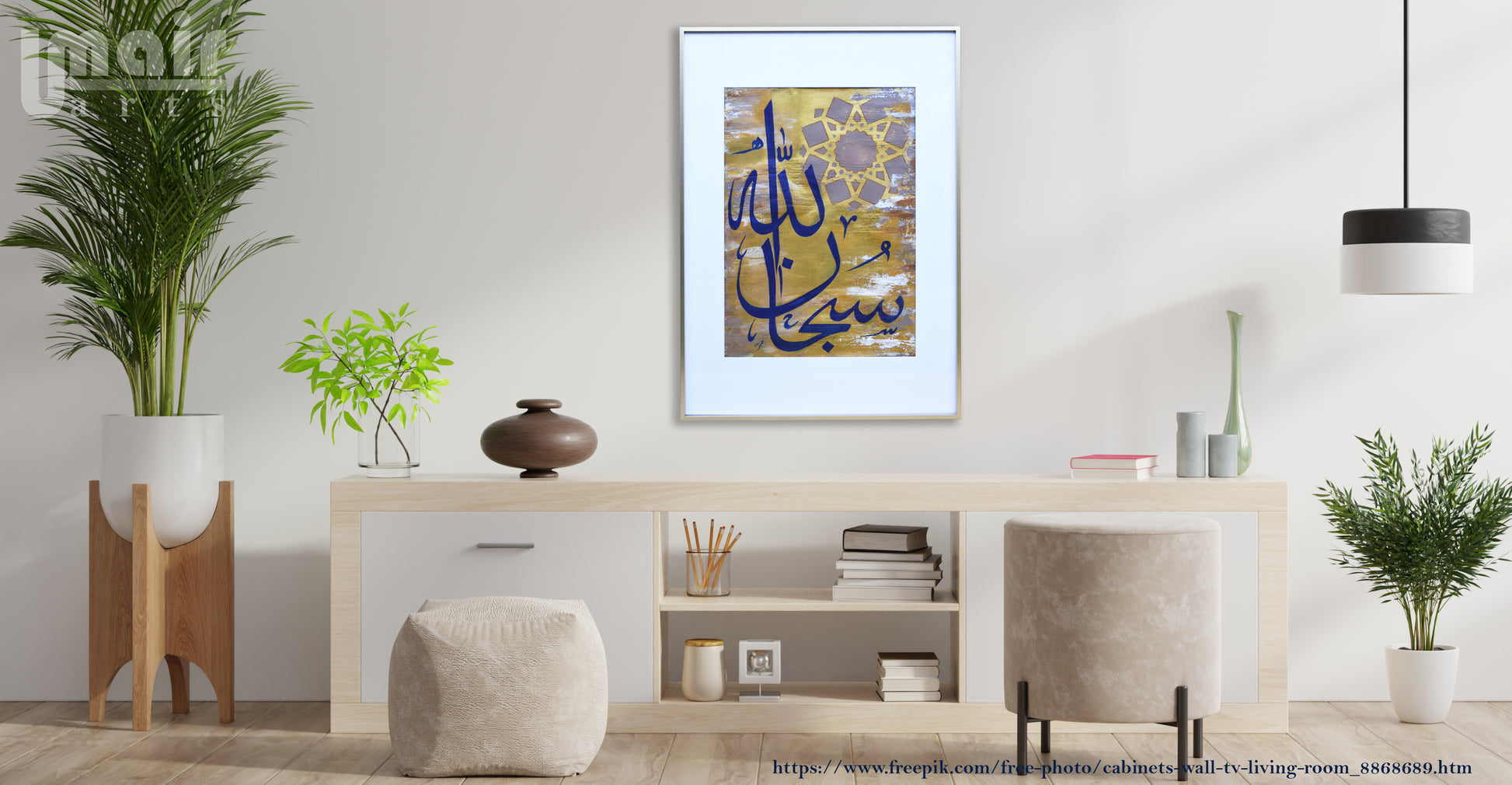 This is a handmade painting on canvas in acrylics. Islamic calligraphy with a colorful background. It is beautifully framed and would look good on any wall. The original has all the textures.